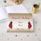 Cardeais vermelhos brilhantes adoram este livro de convidados festas de aniversário. Os pássaros adoráveis estão em um fundo de gradiente de bronze castanho-claro. Todo o texto pode ser personalizado para sua ocasião especial.