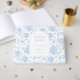 Capture a elegância clássica com este sofisticado e refinado porcelana azul inspirado no livro de convidados adormecido por um delicado padrão de flores azul claro no estilo Chinoiserie, complementado por um texto azul sutil. Este livro de hóspedes serve como um presente de casamento ideal para os recém-casados, adicionando um toque de charme de eterno ao seu dia especial.