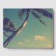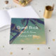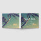 Livro de hóspedes elegante para casamento íntimo na praia. Modelo elegante com tipografia clássica e foto curvada de palmeira. Belas modelos para casais se casarem no verão ou em locais sonhosos costeiros. Parte do conjunto de baratos com decorações incríveis e artigos de papelaria. Personalize com nomes de noiva e noiva. Paleta de cores azul e verde.
