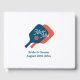 Livro de hóspedes não tradicional para o jogo perfeito! Design de logotipo esportivo com raquete e bola de remo. Personalize com nomes de noiva e noiva. Também excelente para festa de noivado ou aniversário. As cores azul e laranja podem ser mudadas para suas próprias cores favoritas. Modelo para o futuro Sr. e Sra. Parte de uma coleção incomum feita com na moda de papelaria e decorações de moda. Melhor ideia para amantes de picleball!