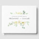 Peça aos seus entes queridos e convidados que assinem seus votos pessoais e sentimentos de amor com este livro de presença de casamento personalizado simples, chique e elegante, uma alternativa econômica com uma bela disposição de flores brancas em aquarela e folhagem verde em um fundo sutil e totalmente personalizável. Explore esta coleção e encontre itens correspondentes em nossa loja!