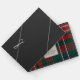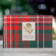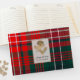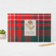 Livro de presenças inspirado em casamentos Highland feito no clássico padrão de xadrez tartan Wilson moderno em vermelho, verde, azul e branco. Uma área de texto com moldura dourada, na frente do livro, tem gráficos de um cardo dourado e texto personalizado preto pronto para personalizar.