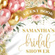 Celebre o amor com estilo com nossos Livros de Registro de Convidados de Chá de Panela com Flores Rosa Boho e Brilho Dourado. Com delicadas flores rosa em aquarela, balões rosa e dourados elegantes e detalhes cintilantes, este livro de registro de convidados é a maneira perfeita de capturar mensagens sinceras, conselhos e votos de felicidade de familiares e amigos.