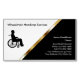 Ímanes de cartão de visita para medicina projetados para a indústria de serviços para deficientes em cadeiras de rodas em ouro clássico, preto e branco. Um design moderno adequado para serviços de transporte em cadeiras de rodas, saúde doméstica ou questões relacionadas com deficiência.