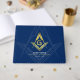 Um sofisticado livro de hóspedes, azul-marinho e ouro, masônico, para reuniões diárias ou eventos especiais de alojamento, como a Instalação Anual de Oficiais. O livro de hóspedes personalizado do freemason tem um design elegante quadrado e compasso (mais opções de cores disponíveis se editadas da área de trabalho), e tem modelos de texto que podem ser personalizadas facilmente por você! Categoria: livros de hóspedes masônicos; livros de hóspedes quadrados e bússolas. Cor: marinho azul e dourado tema de freemasonaria.