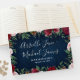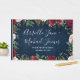 Marinho Marsala Country Rustic Wedding Guest Book - apresenta um fundo de madeira azul-marinho rústico com vegetação, rosas e outros elementos florais em tons de rosa-pincel, marsala, burgundy e muito mais.