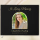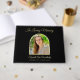 Este elegante memorial fotográfico ou livro de hóspedes fúnebre apresenta uma foto do seu ente querido como o ponto focal dentro de um arco dourado sobre fundo preto. O design apresenta as palavras "In Loving Memory" em um belo roteiro ao longo do topo. Abaixo da sua foto, está o nome do cheio do seu amado e as datas. Um livro de convidados de fotos muito elegante que se tornará uma merecedora. Simpatia por direitos autorais Obrigado Cartões por Kathy Henis