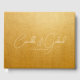 Esta caligrafia de guião branco fluindo no livro de hóspedes de ouro é perfeita para um casamento moderno. Design minimalista simples.