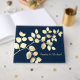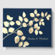 O azul-escuro romântico com um bege ouro deixa um livro de hóspedes com um monograma chic para o casamento de verão e primavera, para as festas doces, para a festa do jardim e para as pequenas empresas chic.