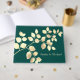 O verde-escuro romântico com um bege ouro deixa um livro de hóspedes com um monograma chic para o casamento de verão e primavera, para as festas doces, para a festa do jardim e para as pequenas empresas quic.