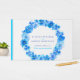 Livro de convidados moderno, com a arte solta de lavagem a aquarela de pansias em forma circular de coroa. Personalize com seus próprios nomes de casais. Ideal sair numa área de recepção para os hóspedes partilharem palavras de conselho, uma lembrança de guardar excelente do vosso dia de casamento. Parte da coleção de arte de casamento de pansias azuis. © Pintura de flor de aquarela exclusiva e design por Sarah Trett. www.sarahtrett.com para www.mylittleedenweddings.com