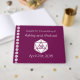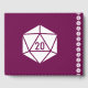 Crie uma maneira personalizada divertida para os convidados do seu casamento ou evento nerd para deixar seus nomes e mensagens para o casal feliz. Um fundo de vinho profundo é decorado com uma lâmina branca de vinte lados, tanto na frente como no verso. Ao lado da coluna, um padrão de d20 cria um sotaque bonito. A frente tem um exemplo de mensagem, nomes e data que pode ser personalizado para tornar este livro exclusivo para o evento. Veja a seção Chic Tabletop in Wine em The Layers of Design: Wedding Designs para outros produtos correspondentes para que você possa criar um evento coordenado.