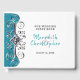 Design apresenta design brilhante azul-lacre com espirais prateados ornamentais e embelezamento de fotos gemstone. Encontre itens correspondentes no nosso suite de casamento de cheio com este design elegante de brilho.
