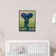 Um poster WPA de 1930 promovendo o zoológico como um lugar para visitar, mostrando um elefante.