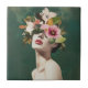 Uma trabalho de arte digital cativante de uma mulher com flores e uma verde esmagadora adorando seu rosto, obscurecendo seus olhos e criando um senso de mistério e conexão com a natureza. Suas feições suaves e estilizadas contrastam com as vibrantes flores e folhagem, enquanto o rico fundo verde destaca a beleza de sua coroa floral. A composição mescla surrealismo e elegância, incorporando uma harmonia entre forma humana e natureza.