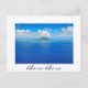 Cartão-postal de uma vista aérea sobre a ilha de Bora Bora tropical com lagoa de turquesa no oceano Pacífico perto do Taiti, na Polinésia Francesa, com uma fronteira branca, e o texto: "Bora Bora".