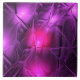 Design fractal de abstrato com abstrato roxo e formas de esfera vermelha atrás de um painel de vidro falso texturizado.