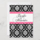 Vista traseira do convite de damasco rosa com mono