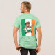 Um ousado herói de desenho animado de rugby pula para frente em triunfo, sorrindo amplamente com a bola de rugby bem apertada e um polegar para cima confiante. Contra as cores verde, branca e laranja da Irlanda, o design irradia poder, orgulho e um ímpeto imparável.