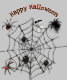 Aranhas grandes e feias sobem pela teia e parece que pegaram sua próxima vítima. Pobre mosca está embrulhada em webbing gritando por ajuda. Feliz texto preto e laranja do Dia das Bruxas.