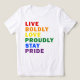 Live Bolly Love orgulhosamente, continue orgulhoso na Design da Camisa do Orgulho na tipografia moderna que diz "LIVE BOLDLY LOVE ORGULHO MANTENHA ORGULHO" em um simples e limpo design minimalista. Design simples no arco-íris do Orgulho que funciona excelente para qualquer um.