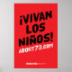 Este é um design em língua espanhola que é destinado a uma audiência global. Obrigados à nossa familiaridade mundial com as expressões "Viva la Revolución" e "Vive la France", o significado de "Vivan los Niños"—com todo o seu ardor revolucionário—não é duro de decifrar: Viva as Crianças! Mas mesmo que a mensagem se perca na tradução, o URL do Abort73 — que é o componente mais importante em todos os nossos designs — permanece firmemente intacto.