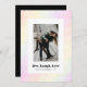 Crie seu próprio cartão de Natal Live Laugh Love | Casal Guilloché com estes modelos fáceis de personalizar. Um design moderno e minimalista com tipografia em negrito e sua imagem no centro das atenções. O fundo é composto por ondas guilloché pastel arco-íris e uma moldura branca simples para fazer sua imagem se destacar! As palavras 'Viva, Ria, Ame' aparecem abaixo de sua foto favorita e seus nomes e o ano em letras serifadas tradicionais abaixo. O verso do convite apresenta um padrão de ondas preto e carvão - espelhando a estrutura subjacente do fundo. Experimente com sua foto favorita do ano e veja como fica ótimo com seus nomes abaixo!