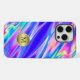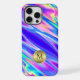 Este colorido gabinete iPhone 15 Pro Max apresenta um design holográfico muito brilhante em tons de roxo, azul, rosa, verde e aqua...De fato, todas as cores que você pode imaginar! Ele também apresenta um monograma personalizado rodeado de dentro crachá de ouro. Faça uma declaração chic com cor e originalidade, com nosso caso Vivid Holographic Monogrammed iPhone 15 Pro Max, e faça dele uma parte invejável de seus acessórios tecnológicos.