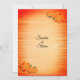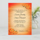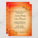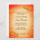 O belo toque das flores laranja numa área igualmente brilhante de laranja. Adicione os primeiros nomes da noiva e do noivo de um lado com todas as informações pertinentes do outro. Ao fazer seus convites, verifique triplamente todos os seus ortografia e datas.