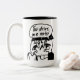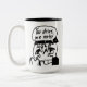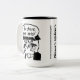 Caneca de café que caracteriza os caráteres recruta e James da série da história em quadrinhos do massacre da catapulta por Justin Swanson.