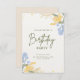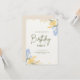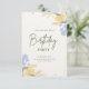 Este brilhante e colorido cartão de aniversário apresenta um design floral com flores amarelas e azuis contra fundo branco. O texto "Você é Convidado para uma Festa de aniversário" é escrito em uma fonte divertida na parte superior do cartão. Abaixo do texto está espaço para você escrever no nome, data, hora, local e informações de RSVP do convidado de honra.