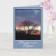 Este lindo cartão de batismo de adulto mostra um deslumbrante pôr do sol vermelho e roxo visto através da silhueta de um carvalho. As palavras na frente dizem: "Bênção em seu Batismo." A escritura no lado esquerdo interno é de Isaías 43:1, que diz: "Não tema, pois eu o remi; eu o chamei pelo nome, você é meu." A mensagem no lado direito interno diz: "Desde o nascer do sol até o seu ocaso, seja louvado o nome do SENHOR por meio da sua obediência, da sua fé e do seu andar com Ele para sempre. Parabéns."