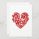 Tipografia 'You Are My Forever' num Grande Coração Vermelho e num Cartão de Dia de os namorados Personalizado em Forma de Coração. Esta placa fofa e na moda apresenta um design na frente de um grande coração vermelho com a Tipografia 'You Are My Forever'. No verso há uma mensagem sentida e uma foto em forma de coração, tudo que pode ser personalizável para ajustado de suas necessidades. Perfeito para um casal que acredita em amor verdadeiro para sempre. Copyright Soar em Designs de Estilo.
