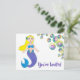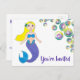 Cartão postal com ilustração original de uma linda sereia loira de vestido azul e roxo, cercada por bolhas coloridas. Basta personalizar o texto para um convite de festa ou evento único.