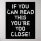Uma citação engraçada em uma fonte angustiada. A frase diz: Se você pode ler isso você está muito perto.