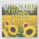 Figura um campo de girassol pintado com óleo com as palavras que você faz brilhar o sol, escrito em ouro.