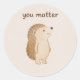 Um adesivo redondo e macio com uma ilustração de um ouriço fofo e a mensagem inspiradora “você é importante.”