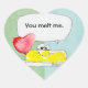 Um bonitinho cartoon amarelo com cara de manteiga diz: "Você me derrete". Há um coração de aquarela vermelho em um fundo aqua verde e azul. Um pedaço de manteiga faz um excelente... para livros de recortes, selos de envelopes, diversão de revistas, para fazer alguns namorados... ou qualquer ideia criativa dizer em uma nota ou carta engraçada de amor a um amigo romântico... Edite o texto para criar adesivos personalizados ou selos de envelopes. (Como adicionar um nome, ou derreter o meu coração sempre que faz esse rosto... etc... Pressione o botão personalizar para alterar a fonte e a cor do texto. Você também pode apagar o coração vermelho ou torná-lo maior ou menor ou movê-lo ao redor. As cores de fundo do arco-íris podem ser movidas e alteradas, bem como apagadas para um fundo branco.