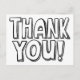Perfeito para crianças, este cartão postal de agradecimento ilustrado e com letras maiúsculas desenhadas à mão em preto e branco simples permite que qualquer pessoa seja o artista e pinte as letras e o fundo para tornar a arte de escrever um bilhete de agradecimento um pouco mais divertida. No verso, um endereço de devolução personalizado torna ainda mais fácil escrever e enviar uma nota de agradecimento, além do porte postal econômico de um cartão postal.