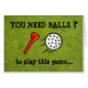 Um T de golfe com uma bola de golfe, com as palavras que dizem o precisa bolas de jogar este jogo, faz um cartão engraçado do golfe para esse jogador de golfe.