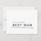 Simples cartão de festa de casamento de homem. Apresenta um script preto e branco com sublinhado. O lado inverso é vazio de uma mensagem pessoal. Kimberly Brett.