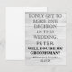 Este belo cartão de convite de 5" x 7" com quadro-negro preto e gravata branca. Este é o melhor para o noivo. Se você está pensando em pedir a alguém para ser seu padrinho para o seu futuro casamento, então por que não escolher estes cartões de padrinho. Este cartão de convite personalizado fará com que seu amigo, irmão, primo, sobrinho, filho ou quem quer que você escolha se sinta ainda mais especial. Este convite é facilmente personalizado clicando no botão personalizar sob a imagem, onde você poderá alterar o texto, a fonte e o tamanho. Você pode convidar seus melhores amigos com estilo com estes convites sofisticados. É adequado para o Melhor Homem ou para Padrinhos. Envie-lhes este cartão de padrinho.