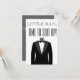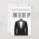 Homemzinho, Hora de se Aprontar com smoking na frente. Personalizado com o nome do portador do anel, mensagem, nome do noivo e uma data dada ou a data do casamento.