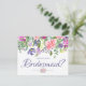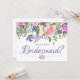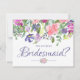 Lindo modo de pedir a uma amiga para ser sua dama de honra. Flores em aquarela rosa e roxa rodeadas por uma variedade de folhagens criam um lindo cartão de dama de honra para guardar. O verso do cartão contém uma bela tipografia e o pequeno ramalhete floral na parte inferior. Este cartão de dama de honra faz parte do conjunto de artigos da Promise of Spring Wedding. Você deve ser capaz de ver itens coordenados e um link nesta página. Se não, copie o seguinte link e cole no seu navegador: https://www.zazzle.com/collections/promise_of_spring_wedding_suite-119632933934202901