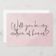 Cartão postal "Você será minha dama de honra" aquarela rosa.