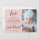 Cartão de proposta principal do guia de fotos moderno. Design apresenta a foto de solteiro do bebê em um fundo brilhante rosa dourado, script de tipografia ''tia'' e orientador principal em letras de caligrafia de tendências. Personalize ainda mais com nomes e mensagens.