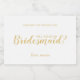 "Você Será Minha Porta-Voz?" Dourado Script Moderno cintilante Rótulos com a redação "Will You Be My Bridesmaid?" no estilo de letra de script moderno em ouro com detalhes em fonte de sans serif dourada em fundo branco. Nota: Os detalhes da folha são simulados no trabalho de arte. Não será utilizada nenhuma folha de alumínio real no fazer deste produto.