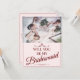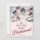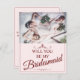 Você será minha dama de honra? Três madrinhas mentirosas com buquês em vestidos cor-de-rosa macio em frente a uma janela. O Backtext pode ser ajustado no modelo. Foto de Valerie Elash