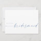 Esta design minimalista é perfeita para a noiva moderna! Apresentando um script de assinatura manuscrito emparelhado com uma simples fonte sans-serif em um azul empoeirado para um sutil pop de cor. Personalize com a sua própria mensagem no verso ou ordene-a vazio e manuscreva a sua mensagem. Veja a loja para combinar cartões Maid/Matron of Honor!