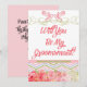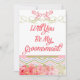 Esta é uma atualização de um cartão de casamento favorito tradicional. Essa diversão e moda você será minha moça feita em tons de flores cor-de-rosa, azuis e verdes, abstrato, pássaros de amor e zigzag chevron, convidando seu melhor amigo a fazer parte de sua festa de casamento. Esta placa é apropriada para gay ou grupos de heteros.